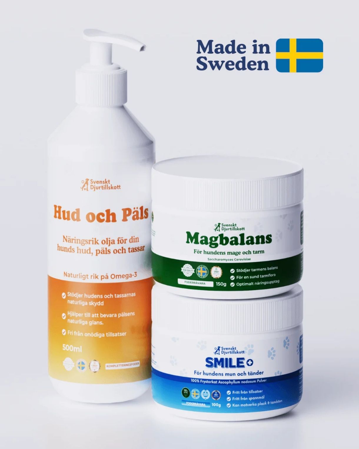 Vi är Svenskt Djurtillskott, och skapar hälsoprodukter till hundar och katter. Alla våra produkter tillverkas i Sverige och vi värnar om kvalitet före marginaler.